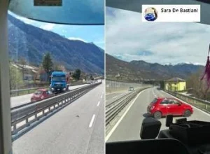Auto contromano sulla Valsugana, camionista mette di traverso il suo tir e la blocca