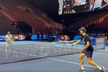 L’invito però è stato accolto. E così Scanagatta è entrato in campo e ha scambiato qualche colpo a rete con Sinner, mostrando buone abilità con la volée e un’ottima manualità. Lo scambio però, come era pronosticabile che fosse, è stato vinto da Jannik, ma Ubaldo può aggiungere un numero uno alla sua collezione.