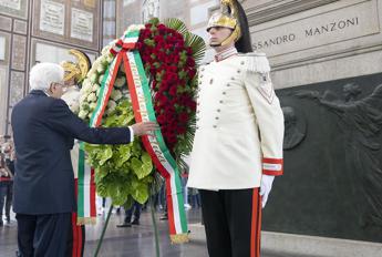(Adnkronos) – Il presidente della Repubblica, Sergio Mattarella, a Milano per le celebrazioni del 150esimo anniversario della morte di Alessandro Manzoni, ha deposto una corona di fiori davanti al monumento funebre dello scrittore, sepolto al Famedio del Cimitero Monumentale. Al termine della deposizione dei fiori è seguita una breve illustrazione artistica del Famedio a cura dell’assessore milanese alla Cultura, Tommaso Sacchi.