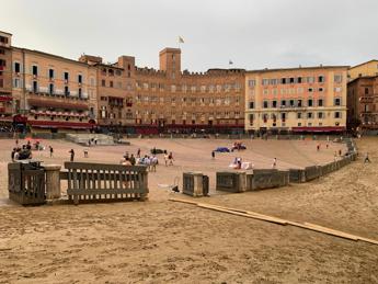 (Adnkronos) – Rimandato a causa del maltempo il Palio di Siena di oggi, 16 agosto 204, dedicato alla Madonna Assunta. La pioggia ha cominciato a scendere su Piazza del Campo intorno alle 17.30 e più tardi è stata esposta la bandiera verde alle trifore di Palazzo Pubblico. L’amministrazione comunale ha ritenuto impossibile procedere con il Corteo Storico e con l’effettuazione della corsa dei cavalli sulla pista di tufo, sentiti i Deputati della Festa e dopo una riunione con i Capitani delle Contrade.