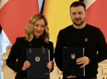 (Adnkronos) – L’accordo sulle garanzie di sicurezza, sottoscritto oggi dall’Italia con l’Ucraina, è “il più completo è importante firmato con un Paese che non fa parte della Nato” e avrà durata di “10 anni”. Lo ha dichiarato la presidente del Consiglio, Giorgia Meloni, nel corso di un punto stampa congiunto con il presidente ucraino Volodymyr Zelensky, la presidente della Commissione Europea, Ursula von der Leyen, il premier belga De Croo ed il primo ministro canadese Trudeau. L’intesa evidenzia “l’impegno alla collaborazione immediata e rafforzata nel caso di un futuro attacco nei confronti dell’Ucraina”.
